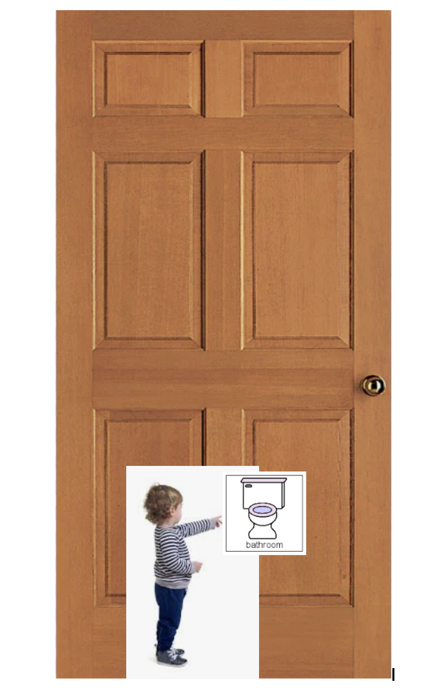 - Place a restroom sticker on their room door or other rooms where they may sometimes urinate on themself. Place it within their line of sight so they can point to it or they can point and accompany their gesture with the word "potty" or "bathroom."