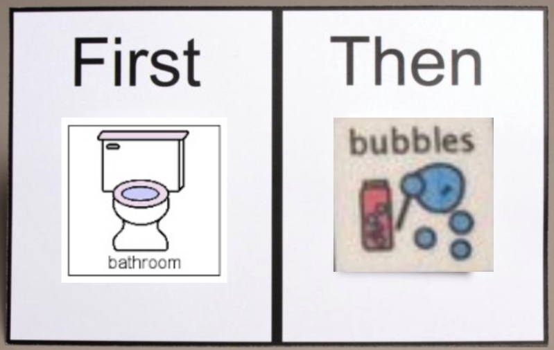 - If they still struggle with transitioning to the restroom, you can use the "first __ then___" image below to show them that right after potty-time, there is a fun item waiting for them!